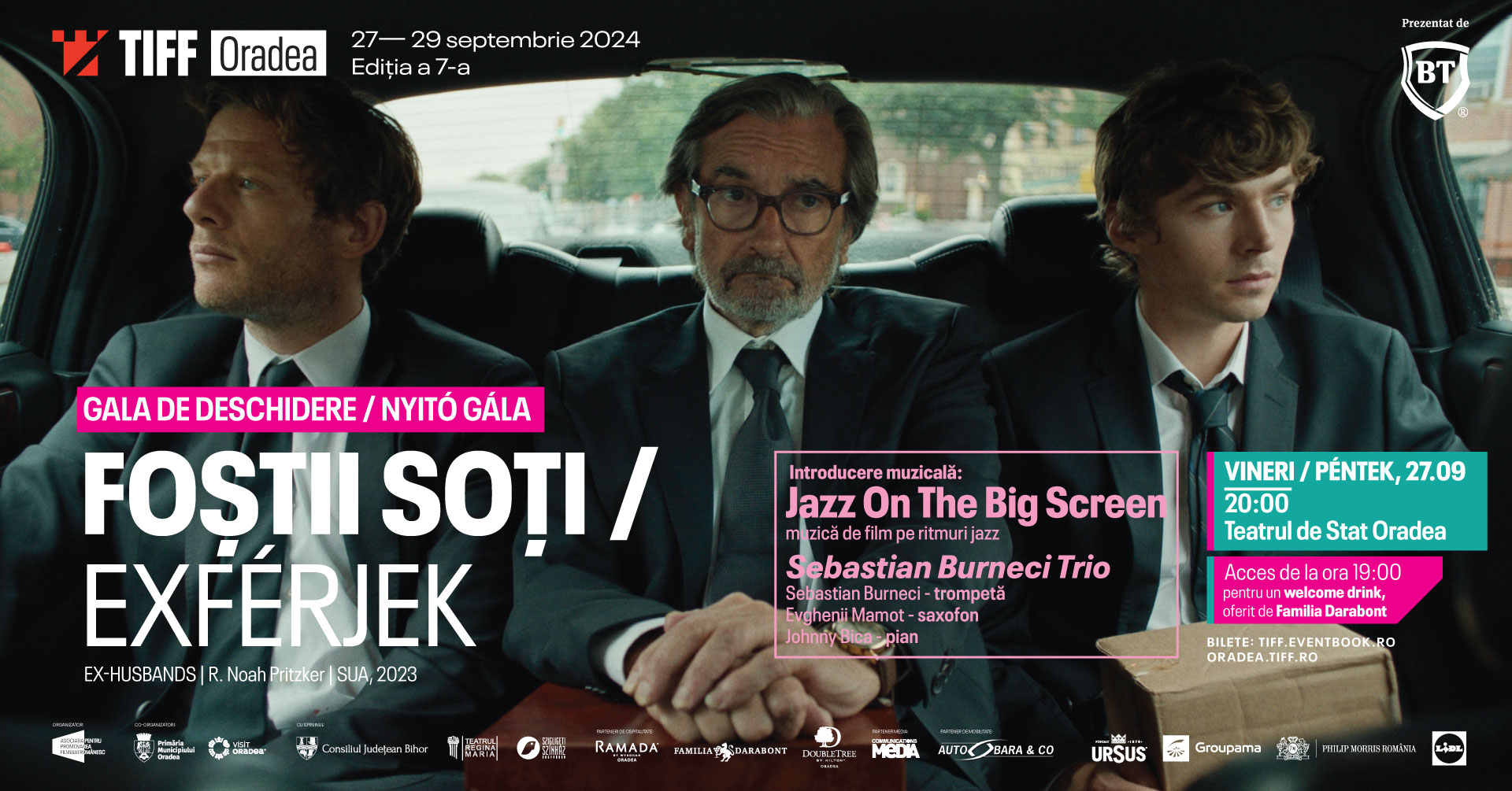 TIFF Oradea revine, în 27-29 septembrie, în formă de zile mari. Gala de deschidere aduce, în prim-plan, drama-comedie “Foștii soți” despre trei generații de bărbați din aceeași familie, față în față cu crizele conjugale. Proiecția va fi precedată de un program de muzică de film pe ritmuri jazz, în interpretarea Sebastian Burneci Trio. Lista experiențelor de neratat la această ediție de TIFF Oradea este completată de două cine-concerte, bijuterii cinematografice de la începutul secolului XX.